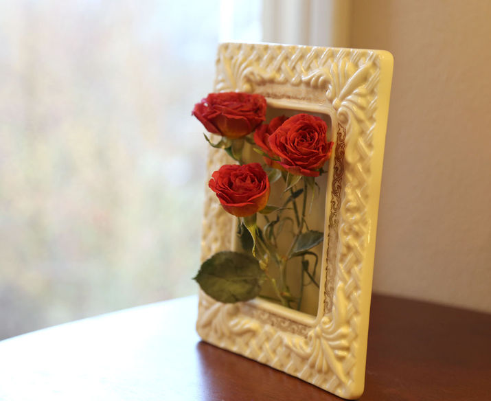 No expensive frame or base is necessary since eternal flowers will not last forever. Use right kind of glue to fix the flowers to the base or frame.